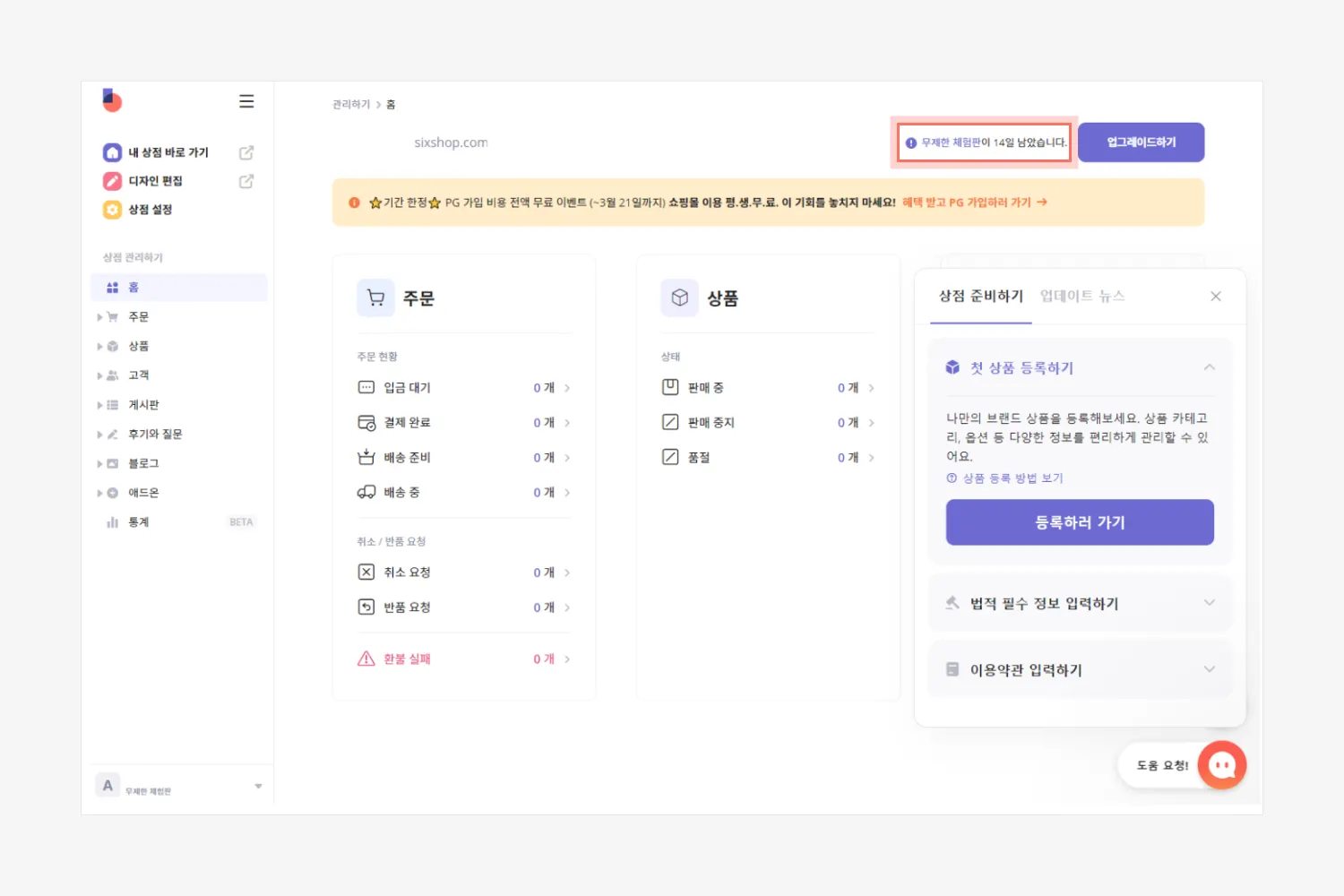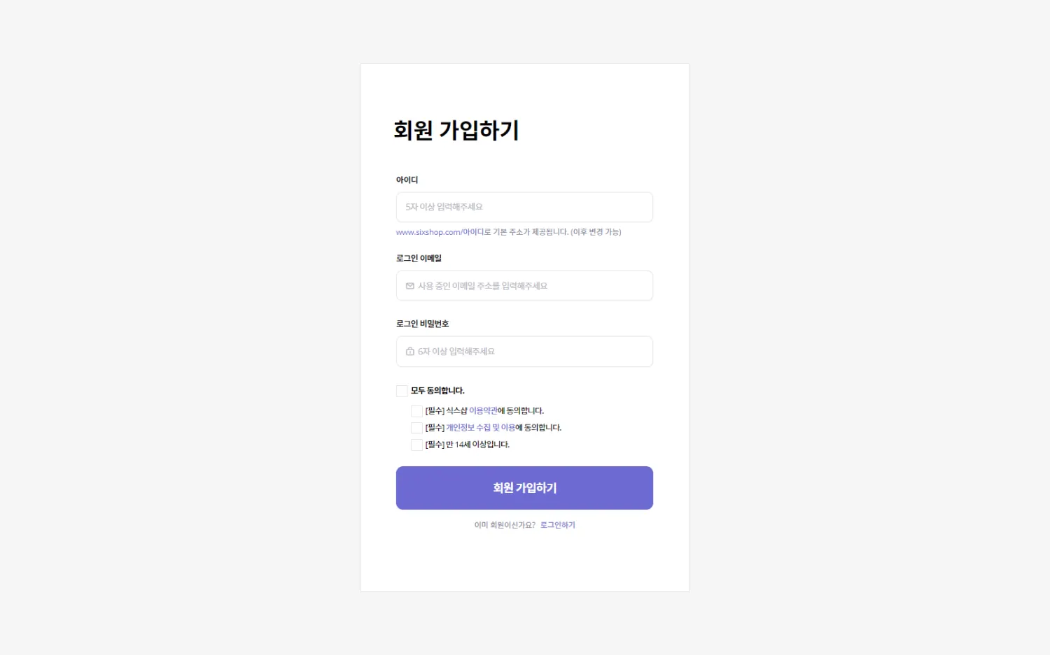식스샵으로 쇼핑몰 혹은 홈페이지 운영을 하시려면 먼저! 식스샵 계정을 만들어 주셔야 해요~