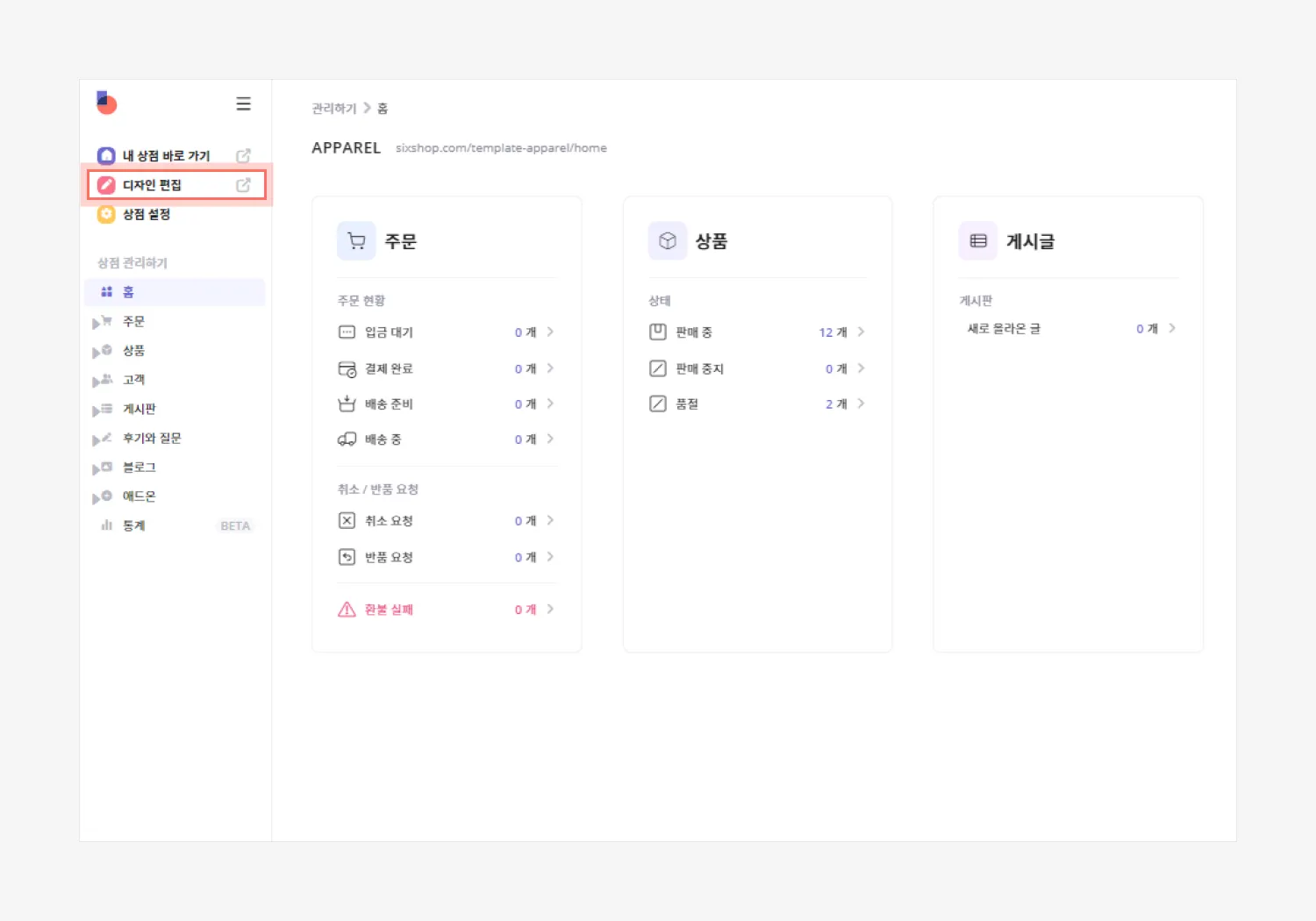 식스샵 왼쪽 상단 디자인 편집을 눌러주세요.