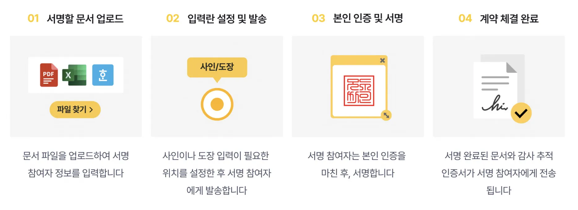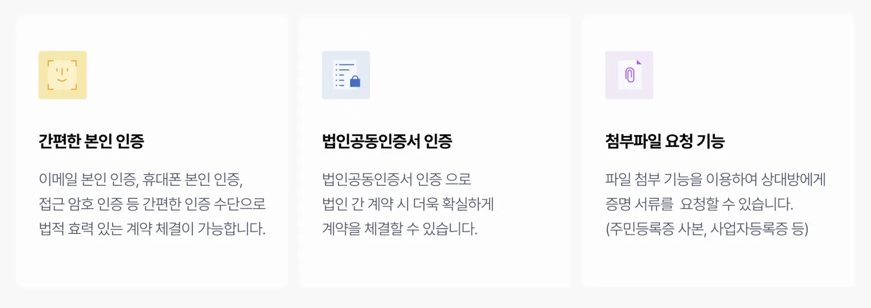 모두싸인에서 이용되는 서명과 계약서는 종이계약서와 동일한 효력을 가지며, 인증 수단 다양화로 상황에 맞게 인증 수단을 선택 설정하여 계약을 체결할 수 있습니다.